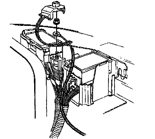 9. Install the positive cable rosebud clip to the engine lift bracket.