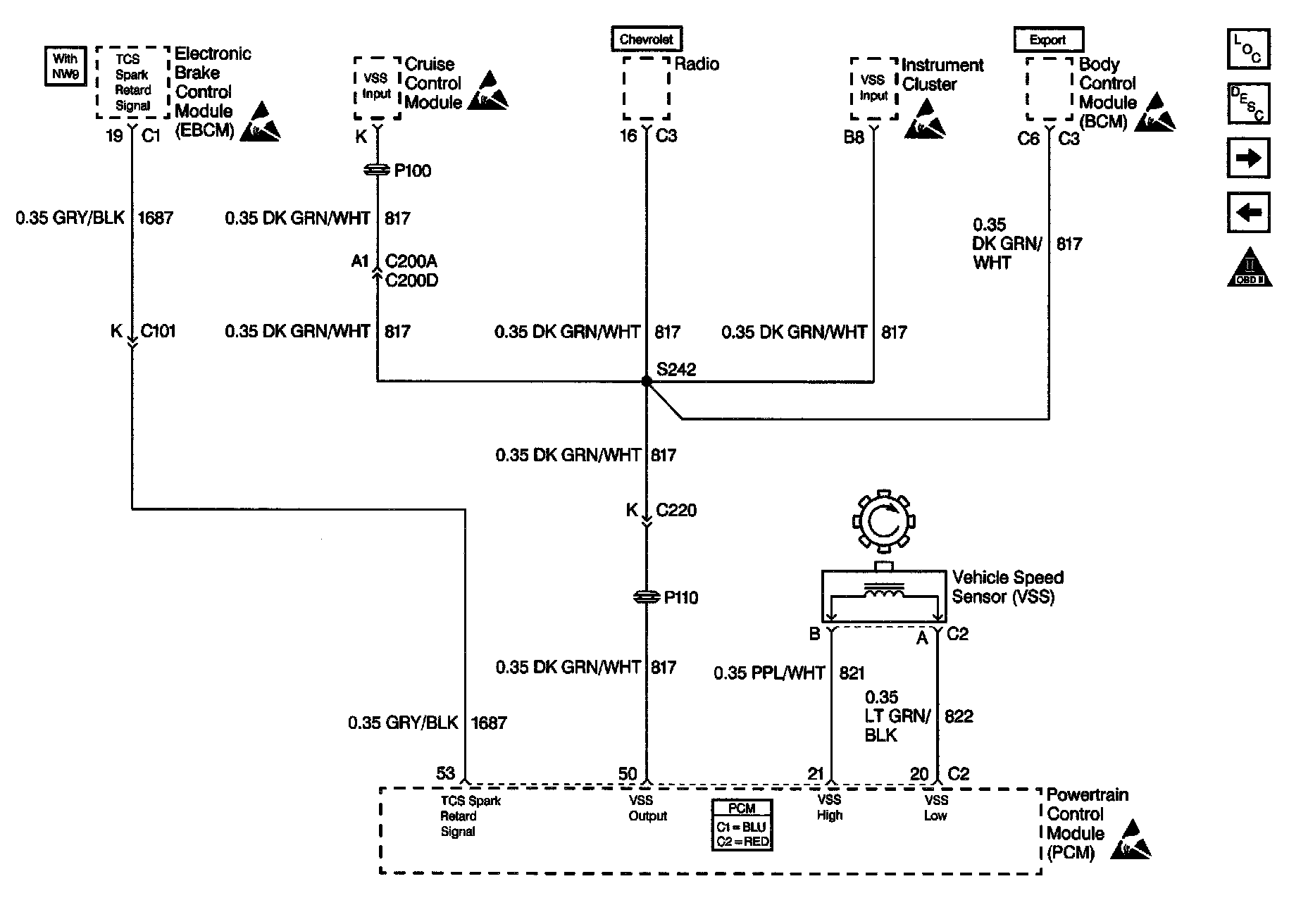 Engine Controls Schematics: BCM, Cruise Control Module, EBCM, IPC, Radio, and VSS:
