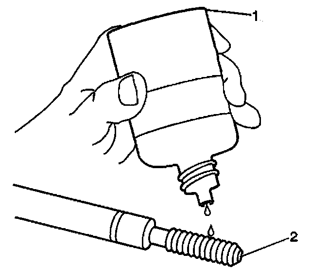 11. Apply threadlock Loctite (R) 277, J 42385-109 (1), or equivalent to the insert OD threads (2).