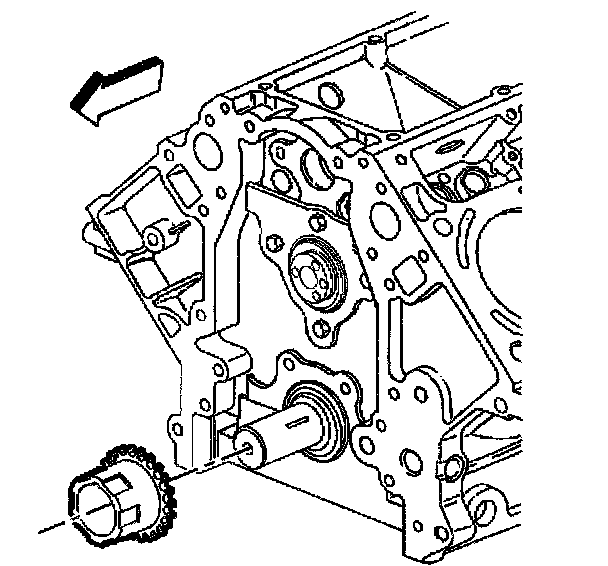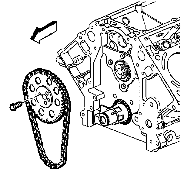 3. Install the crankshaft sprocket onto the front of the crankshaft. Align the crankshaft key with the crankshaft sprocket keyway.