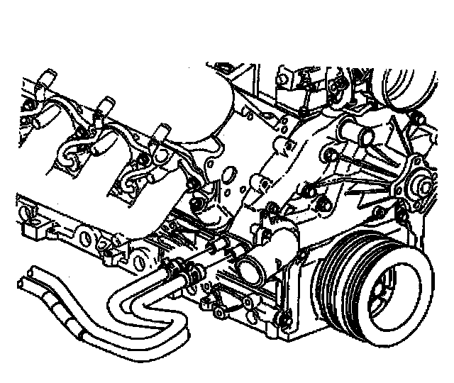 22. Install the two heater hoses from the water pump.
