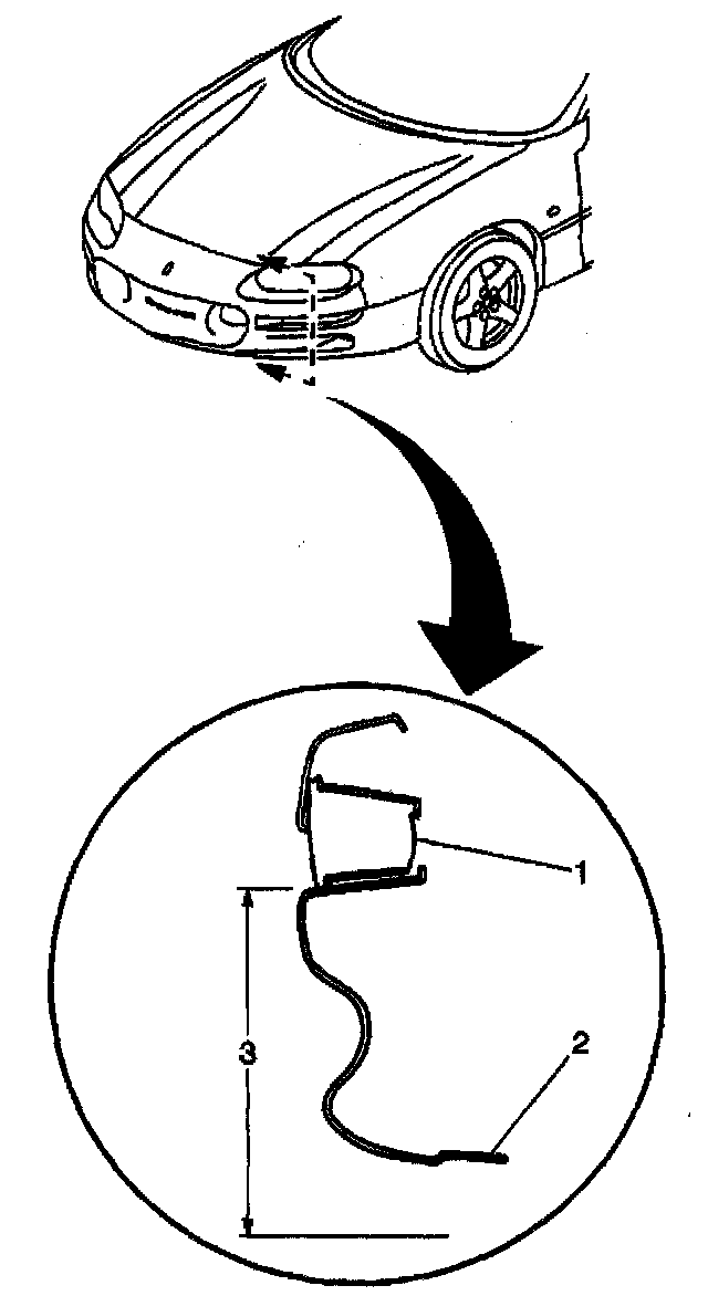1. Calculate the trim heights (1, 2) as measured at the inner edge of the side rocker panels (3) to the ground after each jounce/rebound cycle. Record your measurement.