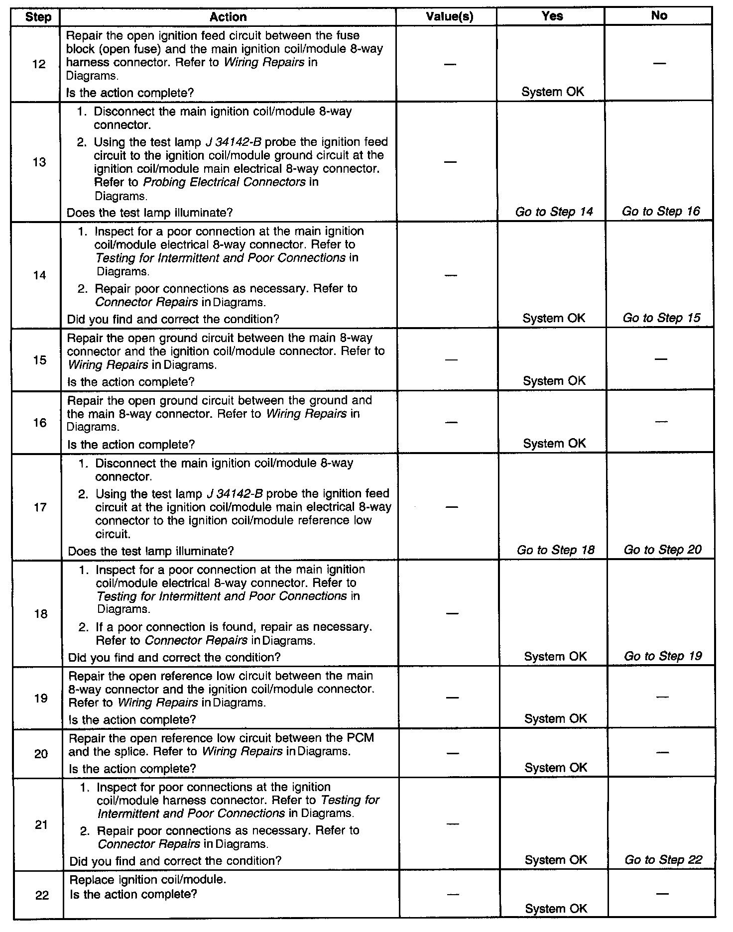 4. A good indication that the fuse is open is more than 2 of the Misfire Current Counters are incrementing on one side of the engine. Inspect the ignition feed circuit for a grounded circuit.