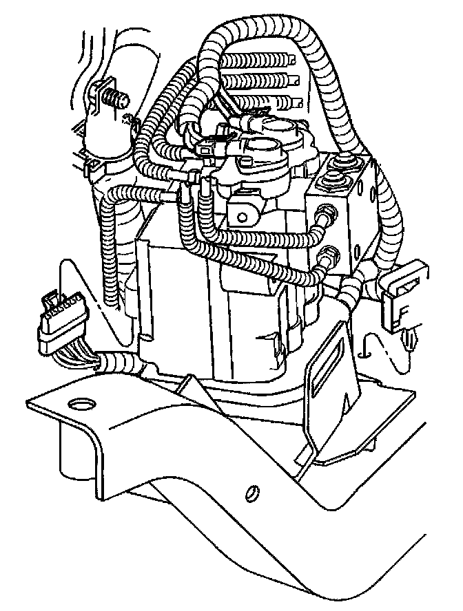 Important: Use a shop cloth in order to catch escaping brake fluid. Prevent the fluid from running down the motor pack case or into the electrical connector. Do not allow brake fluid to contact any painted surfaces as surface damage will occur. If brake fluid does contact any surface, flush the surface with water in order to lessen the damage.