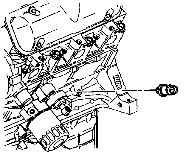 The PCM monitors the engine oil pressure switch (1) signal to determine it the engine oil pressure is OK. If the PCM determines that a low oil pressure condition exists, the PCM will communicate the information over the Class II circuit to the IP Cluster and it will illuminate the indicator lamp.