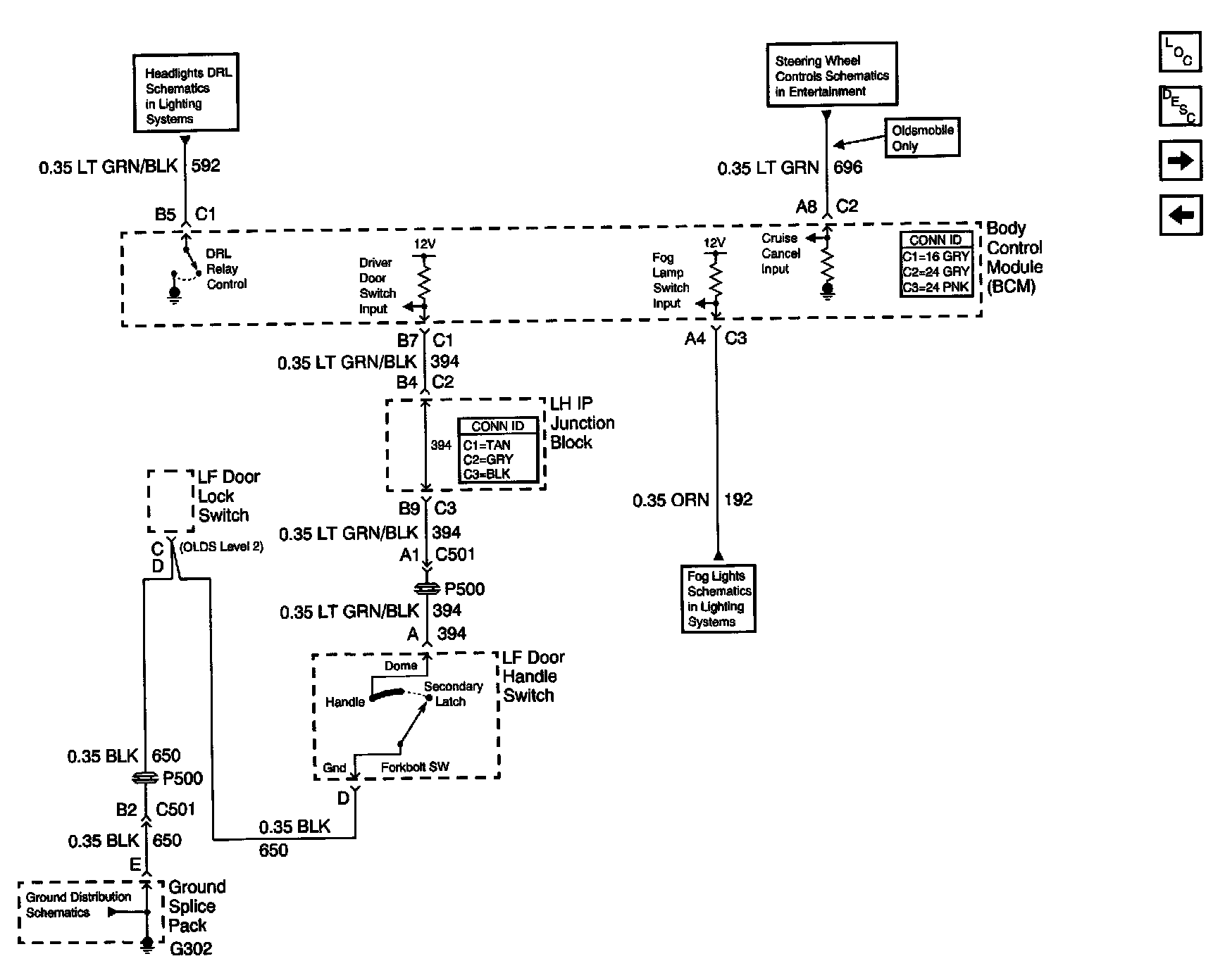 Body Control Module Schematics: DRL Relay Control, Left Front Door Jamb Switch, And Fog Lamp Switch Input:
