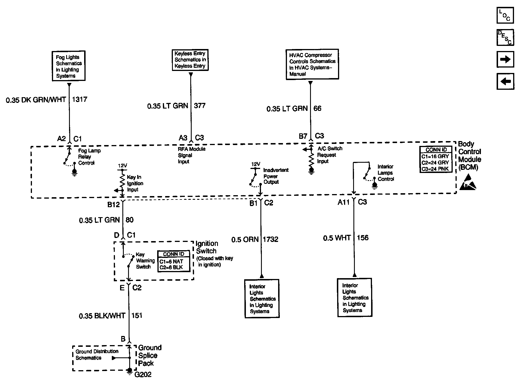 Body Control Module Schematics: Ignition Switch, Inadvertent Power Output And Interior Lighting Control: