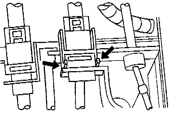 5. Depress the locking tabs and remove the forward cable from the anchor.