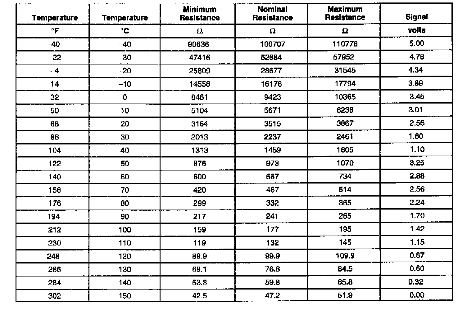 Transmission Fluid Temperature (TFT) Sensor Specifications
