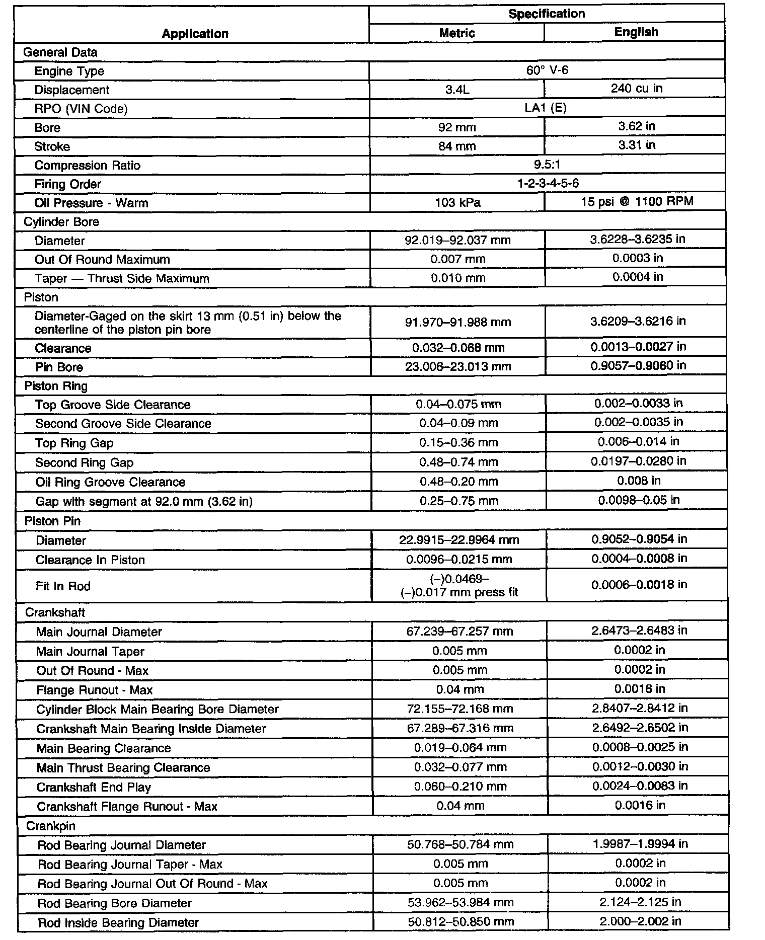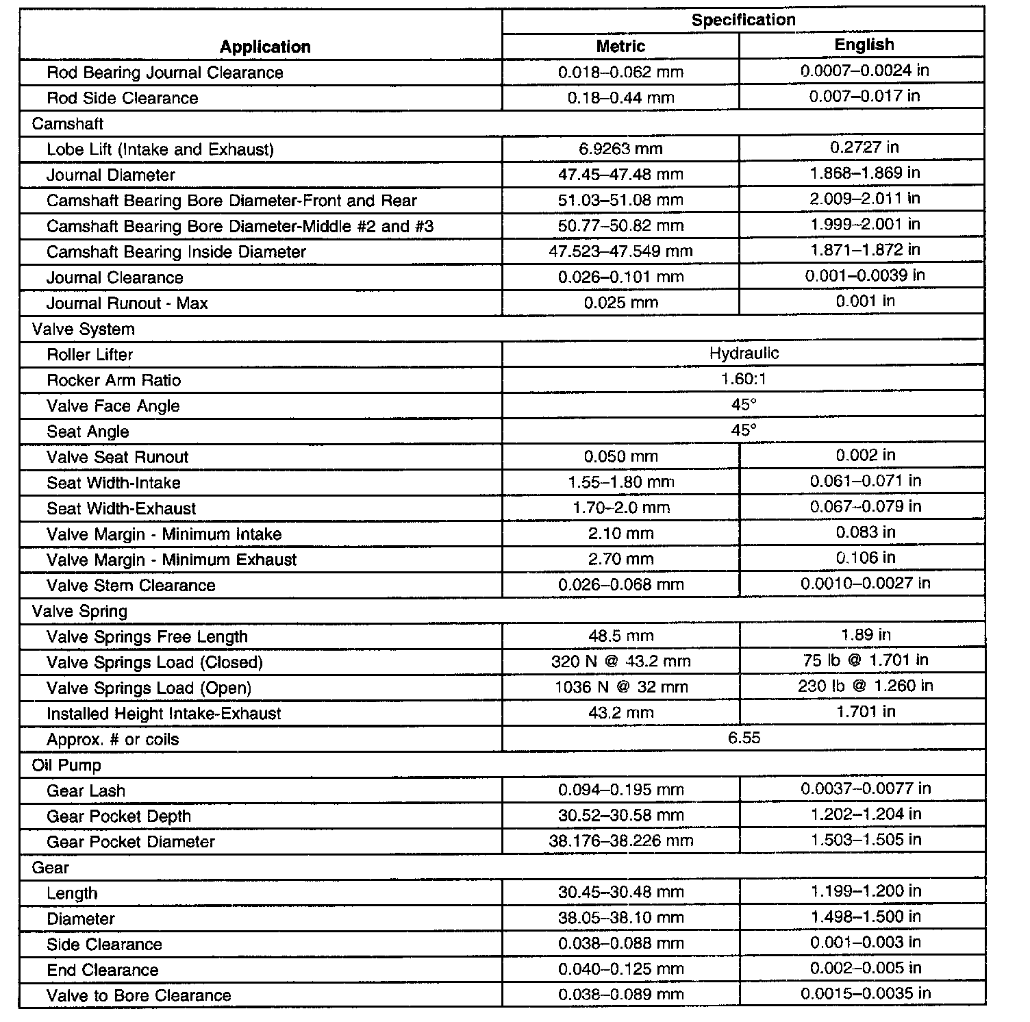 General Engine Specifications