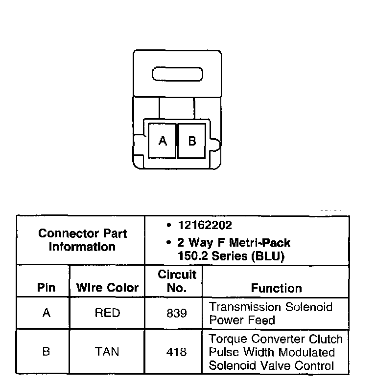 Torque Converter Clutch Pulse Width Modulated Solenoid Valve Connector, Wiring Harness Side