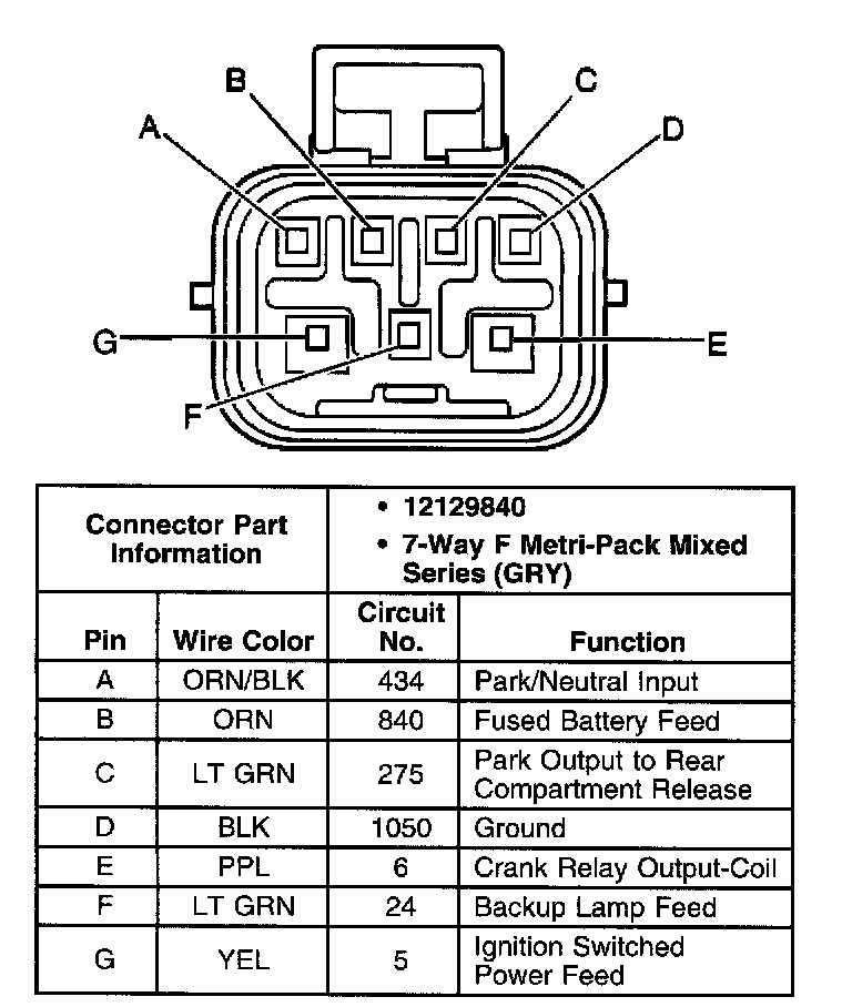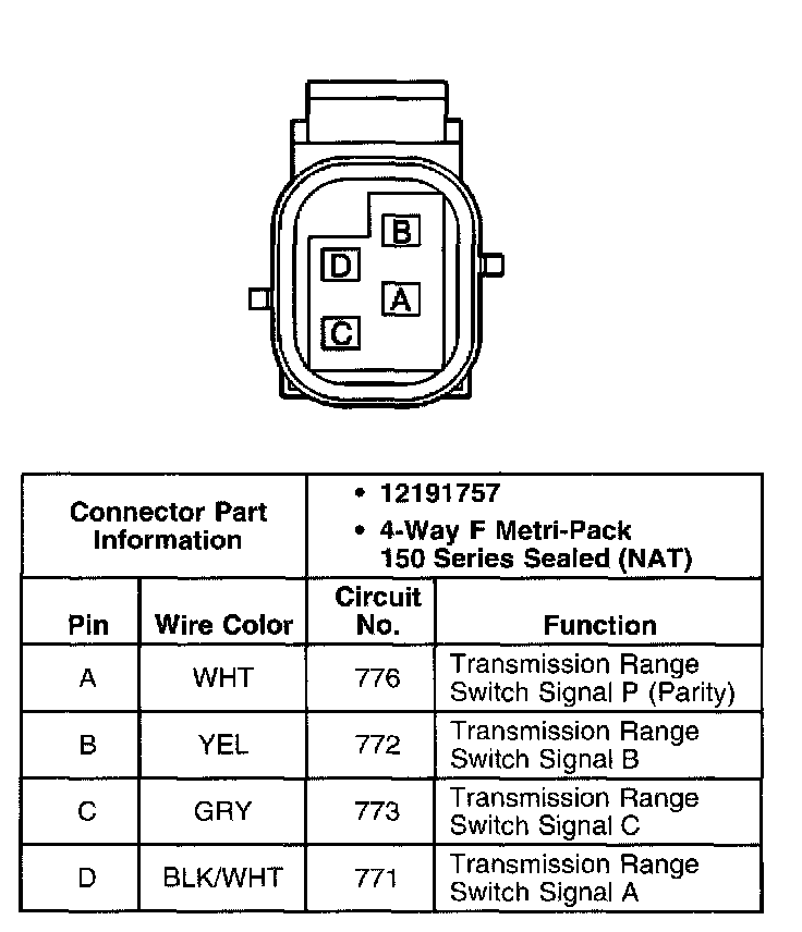 Transmission Range Switch C1 Connector, Wiring Harness Side