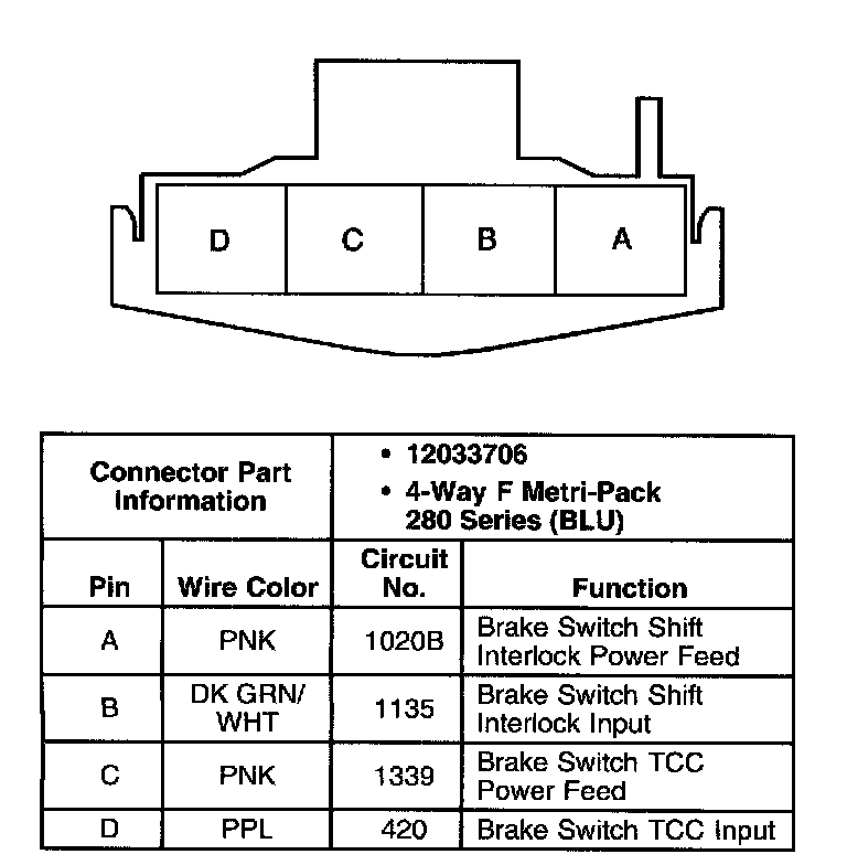 Transmission Shift Interlock/TCC Brake Switch Connector, Wiring Harness Side