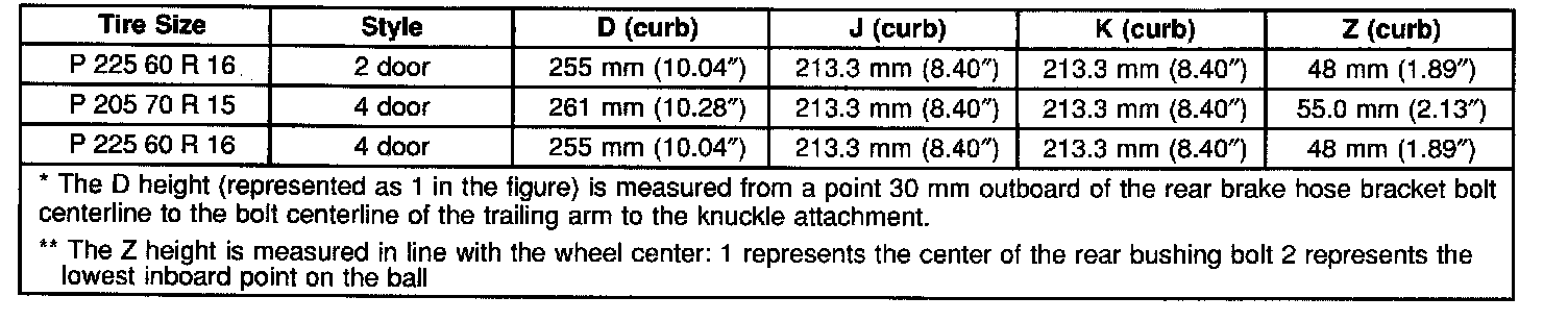 Ride/Trim Height Specifications