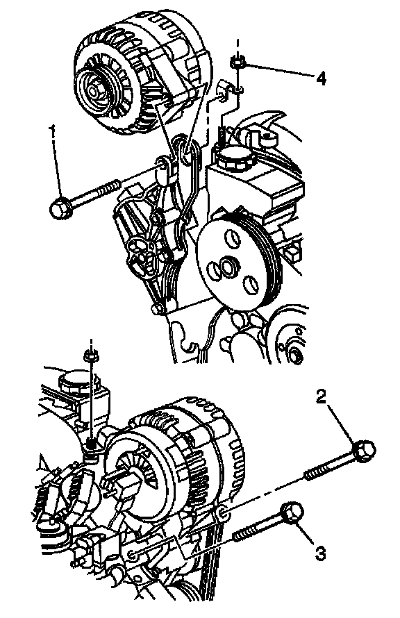 Tighten the generator rear brace nut (4) to 25 N.m (18 lb ft).