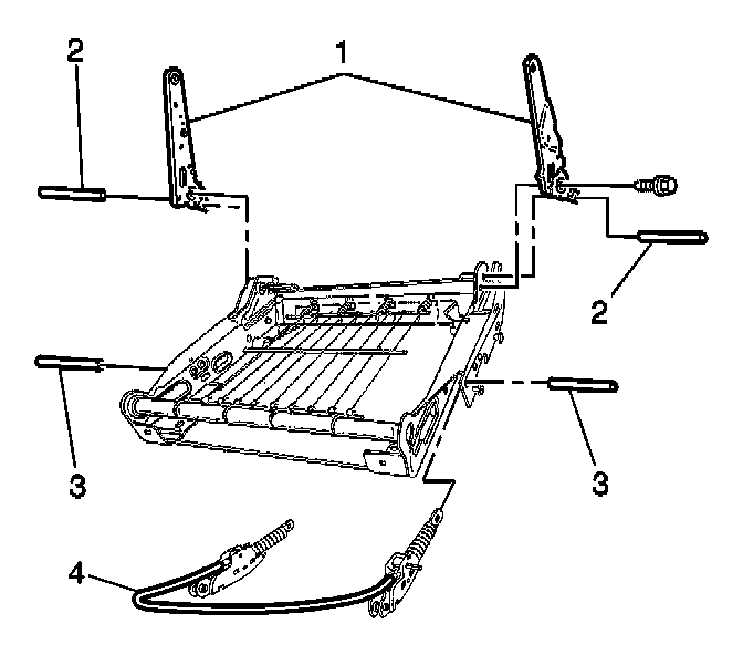 4. For the passenger side only, disconnect the E/Z entry cable from the seat adjuster and the tie strap. Retain the cable to the seat bottom.