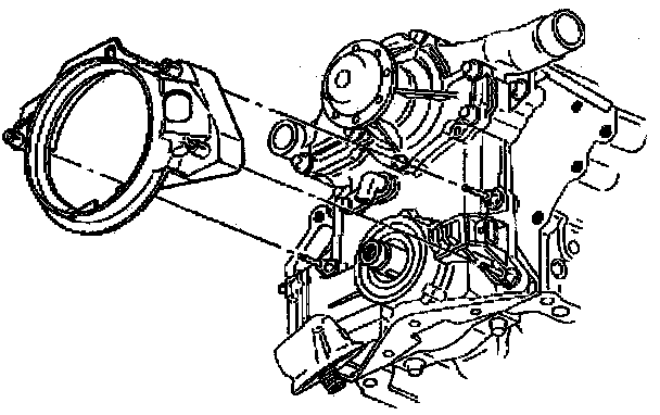 18. If replacing the engine front cover, remove the water pump from the engine front cover. Refer to Water Pump Replacement in Cooling System.