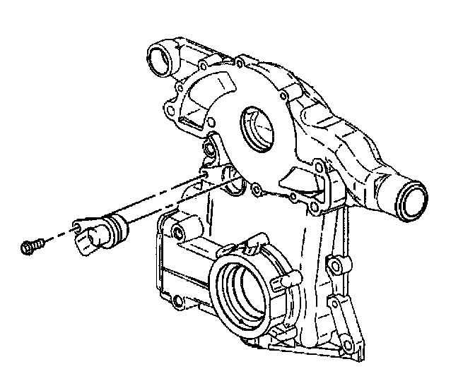 17. If replacing the engine front cover, remove the oil filter adapter and pressure relief valve from the engine front cover. Refer to Oil Filter Adapter and Bypass Valve Assembly Replacement.