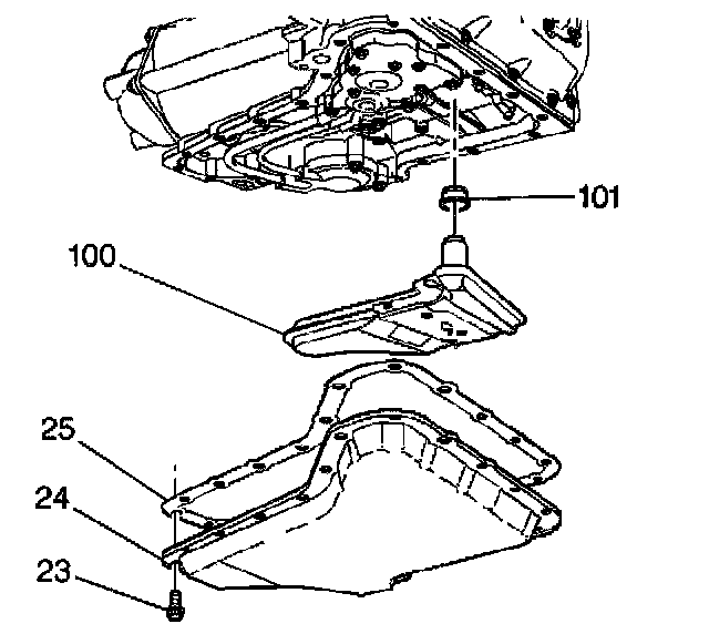 3. Install the gasket (25) and the oil pan (24). Refer to Oil Pan Replacement.