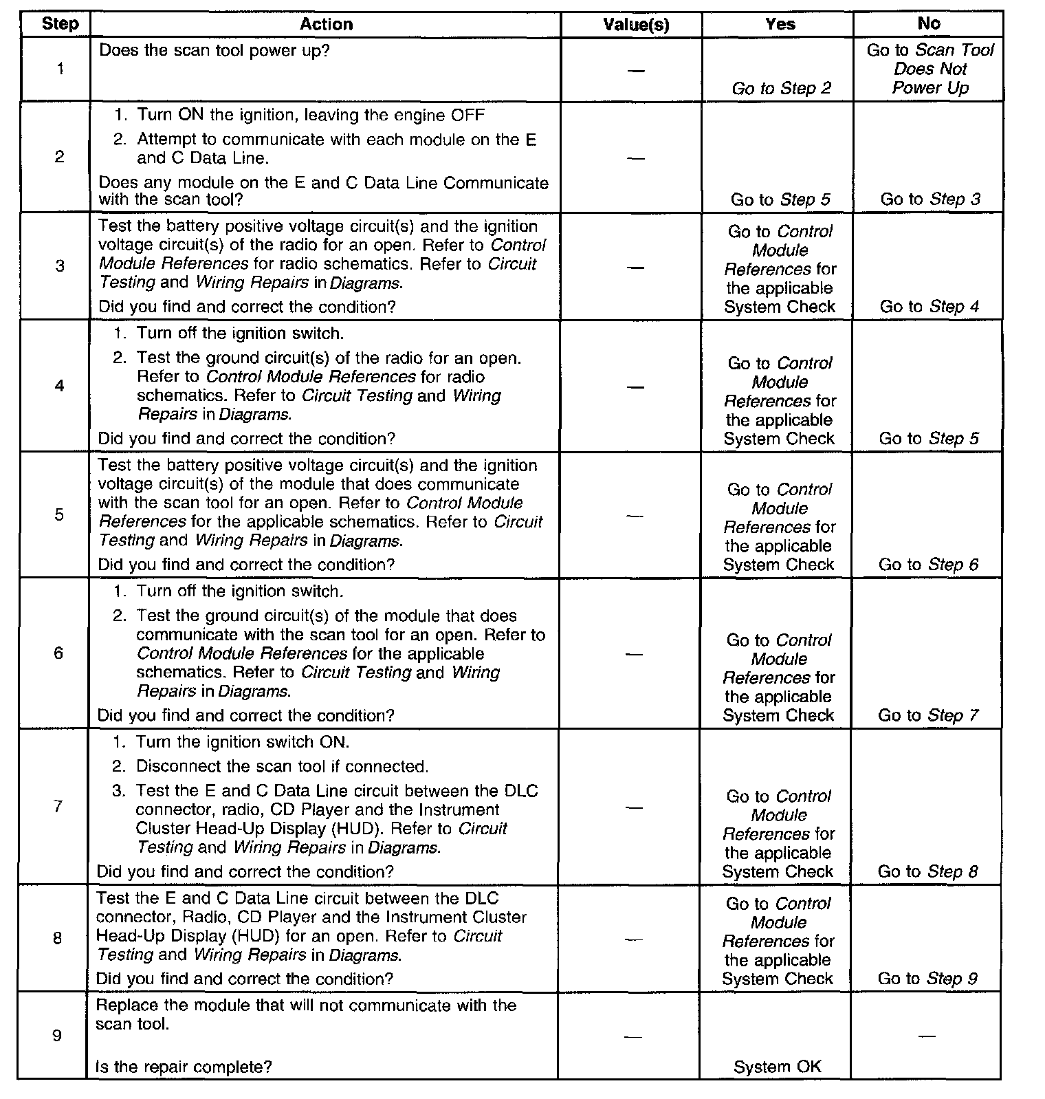 Scan Tool Does Not Communicate With E and C Data Line