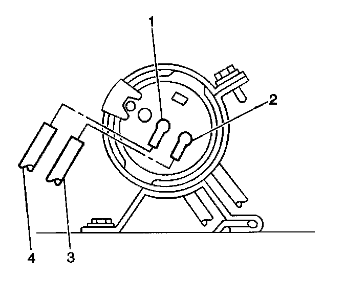 2. Remove the hoses (3, 4) from the canister fittings (1, 2). Mark the hoses to install on the new canister.