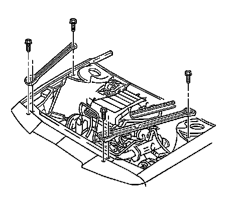 2. Install the bolts to the front sheet metal diagonal brace at the radiator support.