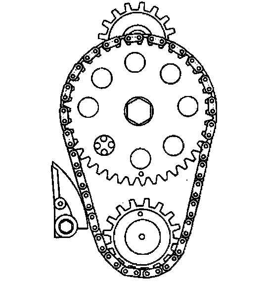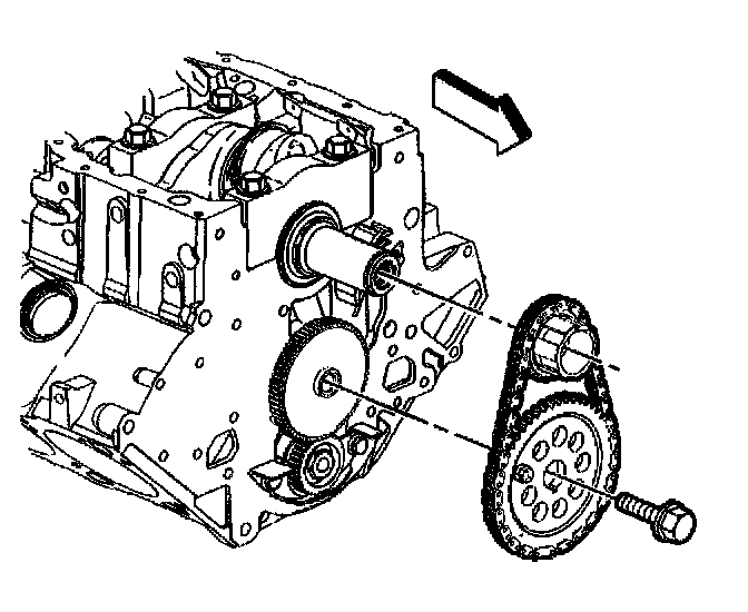 3. Install the timing chain, the crankshaft sprocket, and the camshaft sprocket.