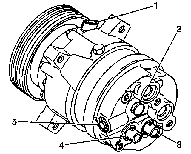 2. Disconnect the electrical connector from the switch (3 or 4) in the rear head of the compressor.
