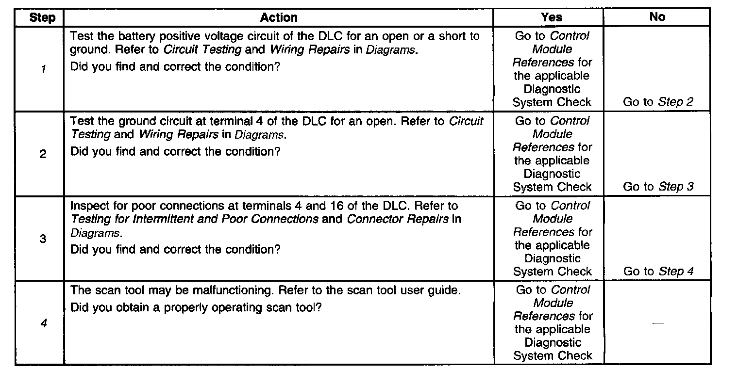 4. The battery positive voltage and ground circuits of the DLC are functioning properly. The malfunction must be due to the scan tool.