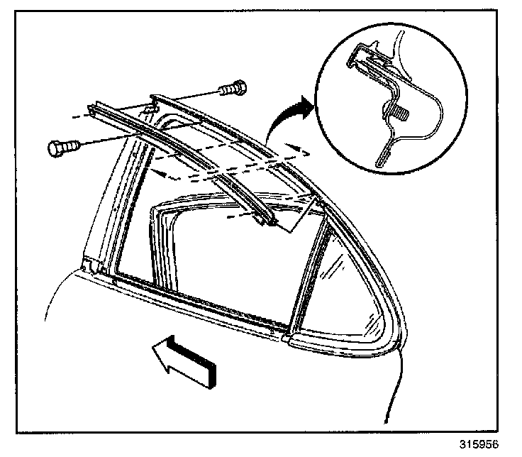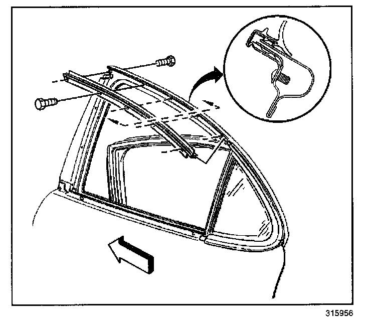 REMOVAL PROCEDURE1. Partially remove the upper portion of the rear door frame applique.