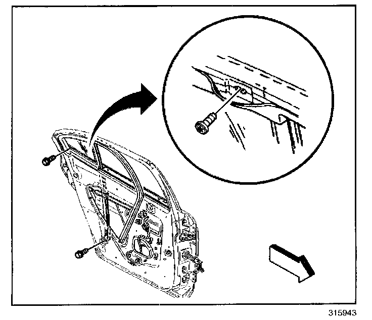 7. Remove the bolts from the rear door window weatherstrip.