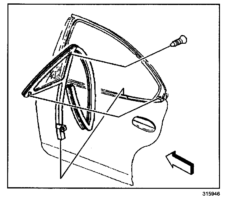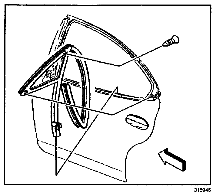 REMOVAL PROCEDUREThe rear door stationary window is part of the door window weatherstrip. If the stationary window needs service replace the entire door window weatherstrip.