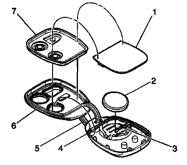 2 halves of the transmitter case at the slot provided near the key ring (5) hole.