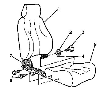 2. Apply adhesive to the seat recliner bolts. Use GM adhesive P/N 12345382 or the equivalent.