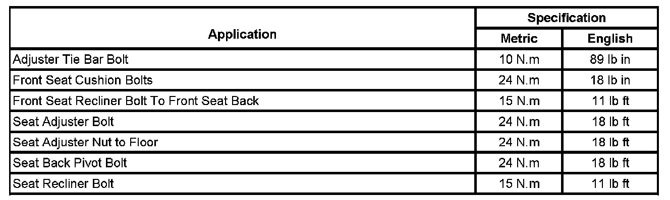 Seats: Specifications