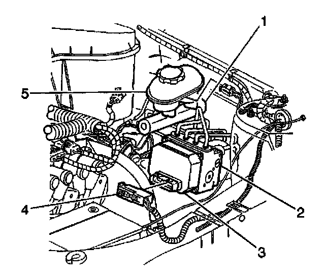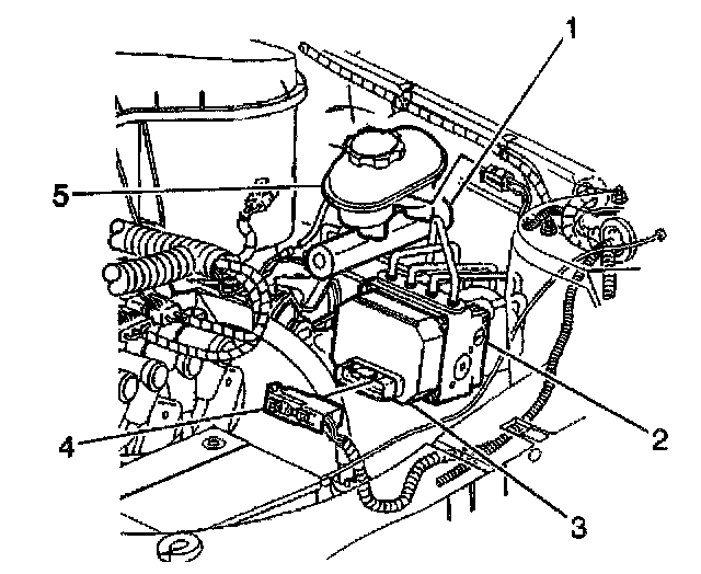 4. Disconnect the Electronic Brake Control Module (EBCM) harness connector (4).