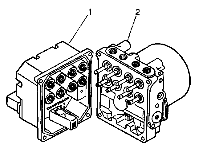 7. Separate the EBCM (1) from the BPMV (2) by gently pulling apart until separated.