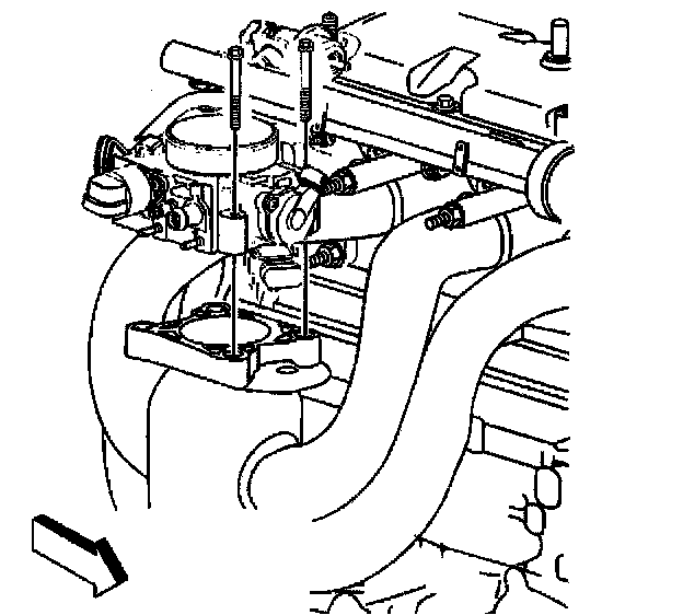 14. Remove the intake manifold attaching nuts and the bolts.