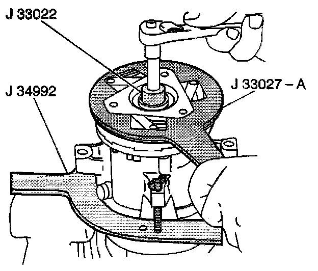 11. Tighten the hex portion of the body of the J 33013-B in order to press the hub onto the shaft.
