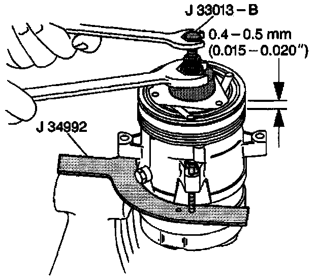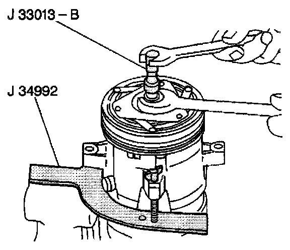 9. Back off the body of the J 33013-B in order to allow the center screw to be threaded onto the end of the compressor shaft.