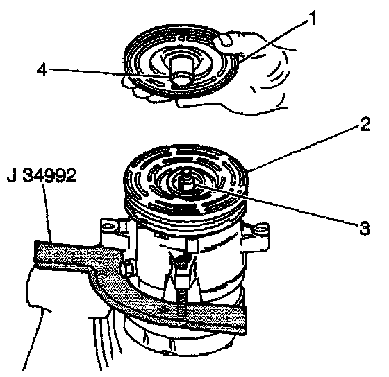 NOTE: Do not drive or pound on the clutch hub or the shaft. Internal damage to the compressor may result.