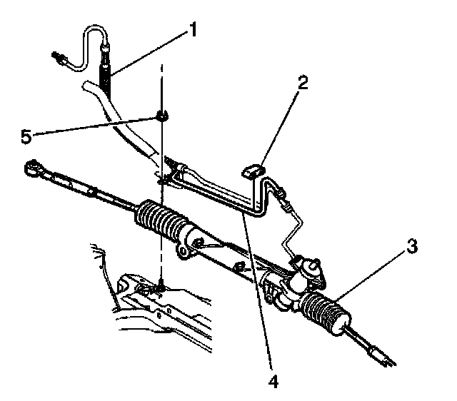 4. Remove the power steering pressure hose (1) from the power steering gear (3).