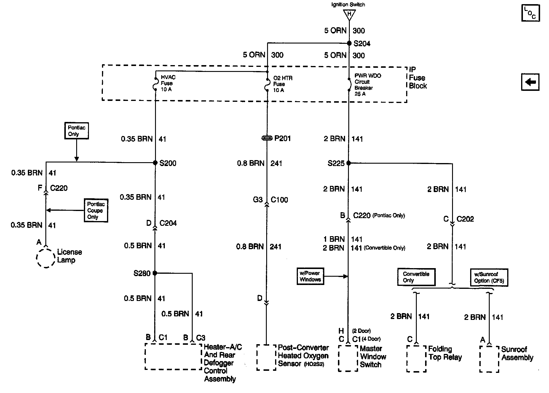 Power Distribution Schematics: HVAC, O2 HTR, and PWR WDO/SUNROOF Fuses: