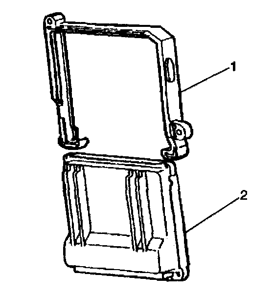 2. Slide the PCM and the retainer (1) into the PCM bracket (2) slots.