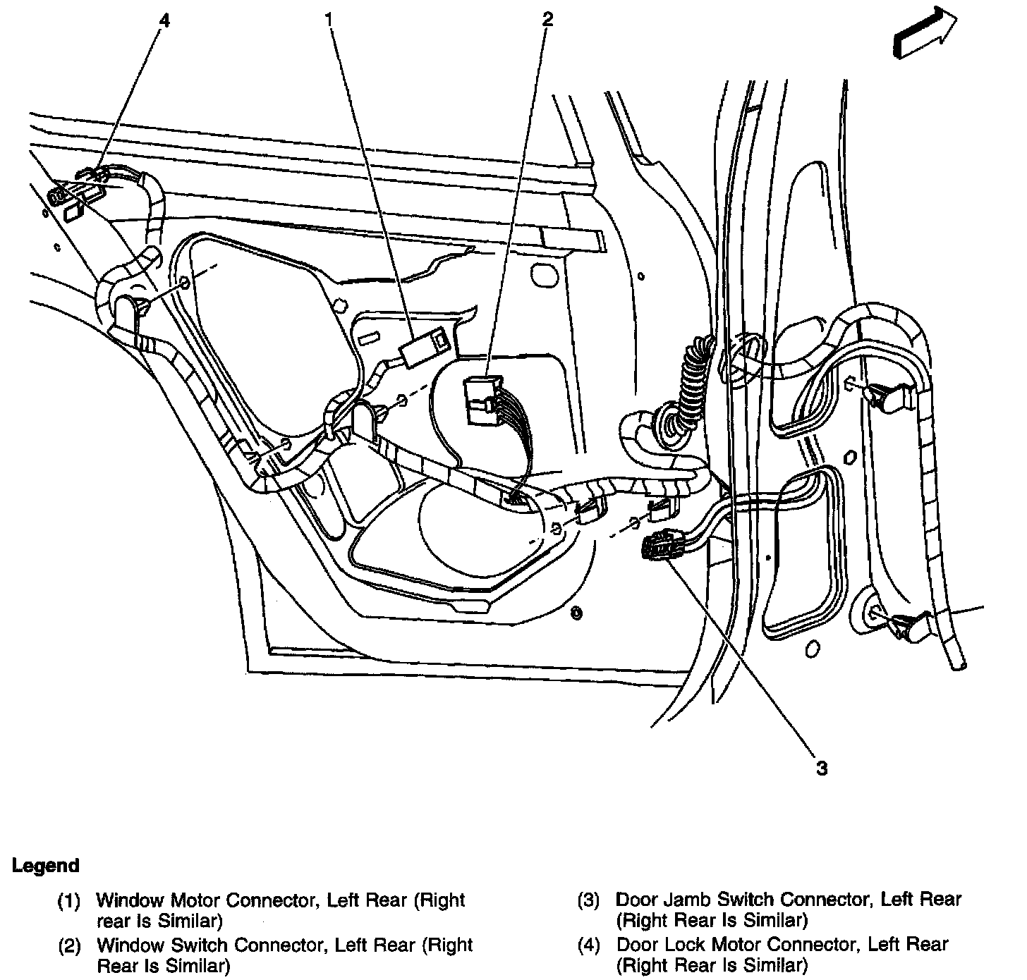 LR Window Motor and Switch Connector and LR Door Lock Motor Connector: