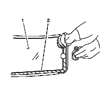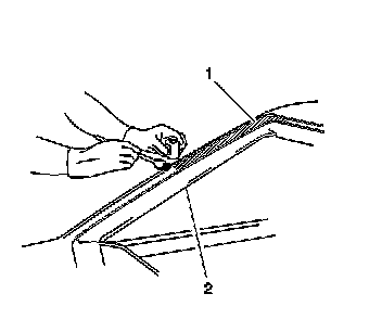 If applying urethane adhesive to the inside edge of the windshield reveal molding (1) use the windshield reveal molding as a guide for the nozzle.