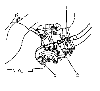 3. Remove the cruise control cable (2) from the throttle lever (3).Opening the throttle lever by hand will aide in the removal of the cruise cable.