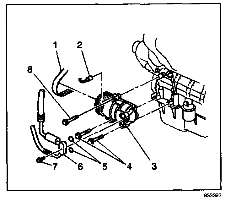 8. Install the compressor upper mounting bolt (8).