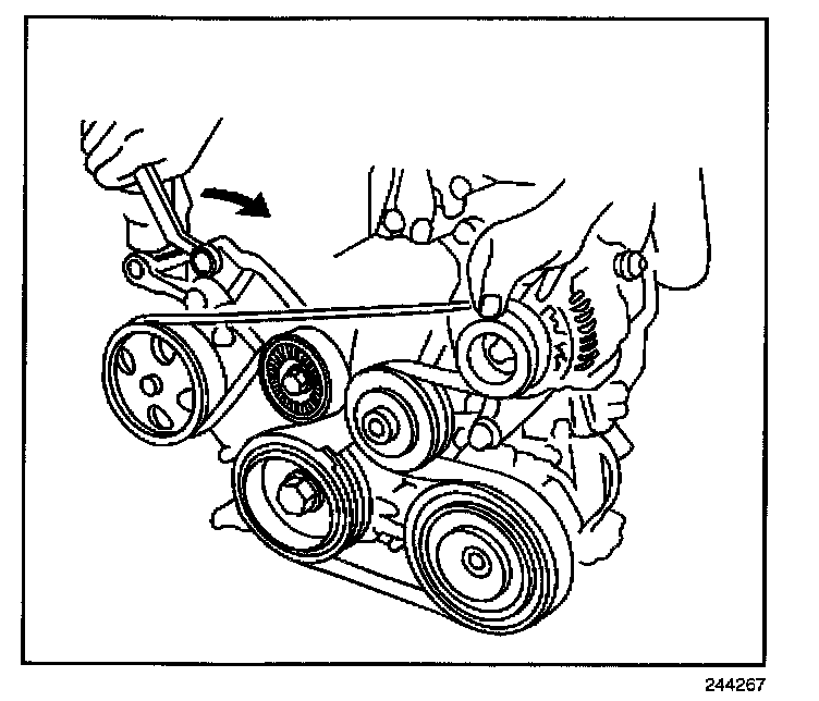 2. Loosen the drive belt tension by turning the tensioner clockwise.