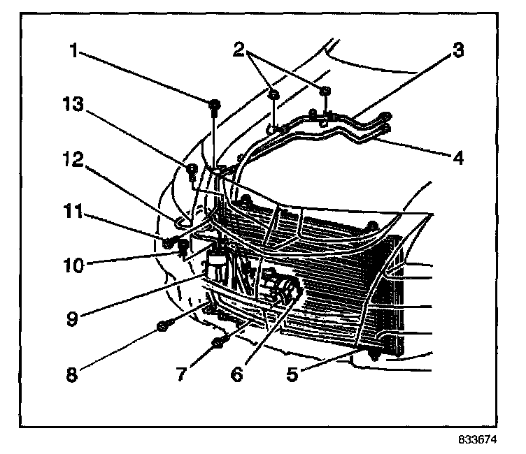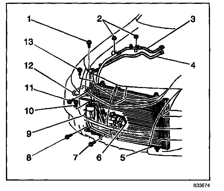 7. Install new O-rings lubricated with mineral base 525 viscosity refrigerant oil.
